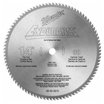 This 14 in. ninety tooth blade is intended to chop light-weight gauge metal materials and chrome steel. The blade has vibration damping that reduces heat, sparks and noise for cleaner, smoother, burr free cuts. to be used with metropolis Dry Cut Machine 6190-20.